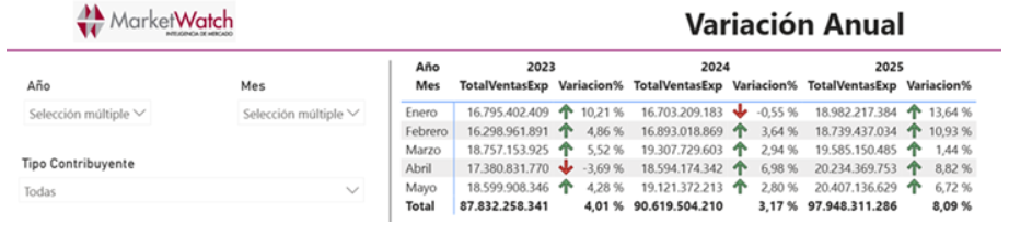 Las ventas y exportaciones de mayo 2025 fueron superiores en 6.7% a las de mayo 2024.